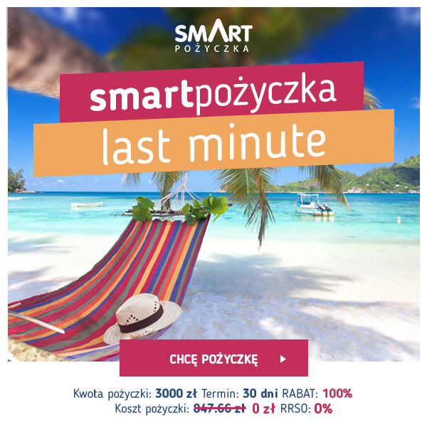 Zapraszamy do skorzystania z wakacyjnych materiałów dla smartpożyczka – jpg, gif i html mail. Proszę mieć na uwadze, że na www.smartpozyczka.pl pierwsza pożyczka do 3 000 zł jest zawsze za 0zł oraz jeśli klient nie będzie w stanie spłacić pożyczki istnieje opcja przesunięcia czasu spłaty